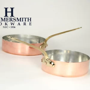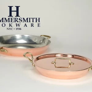 Hammersmith Brooklyn’s Original hand crafted copper cookware is 99% pure and has been an essential part of cooking for centuries. Copper conducts heat evenly and quickly so you can get a perfect sear on meat or fish without burning it, while the non-reactive surface means that acidic foods like tomatoes won’t affect its color or flavor. In addition, copper will not chip, warp or pit which can cause hot spots like you find in other types of cookware.